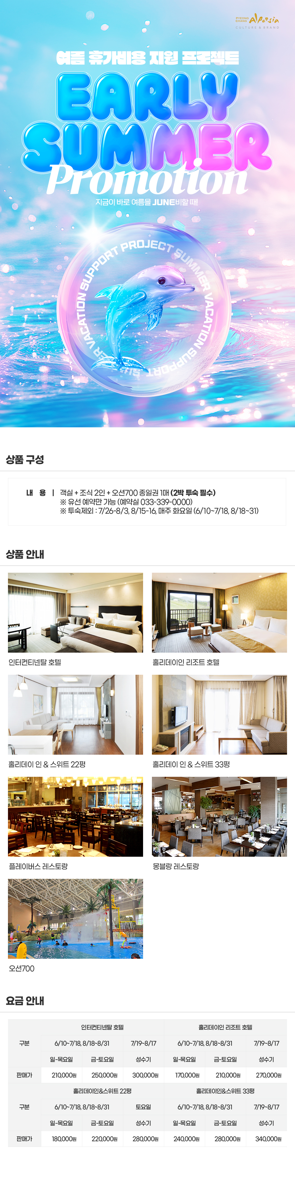 객실 1박 + 조식 2인 + 오션700종일권 1매제공 (2박 투숙필수)