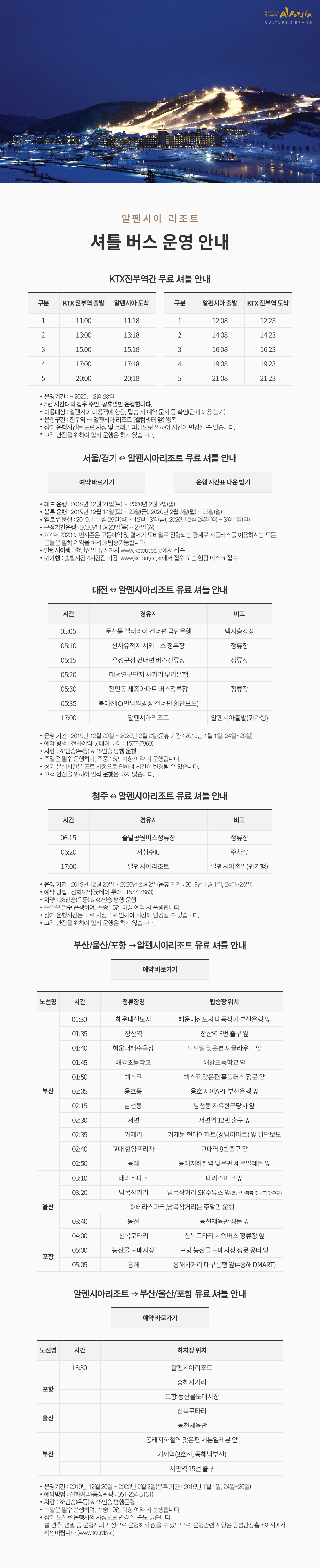 [공지]19/20시즌 셔틀 버스 운영 안내